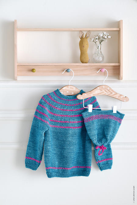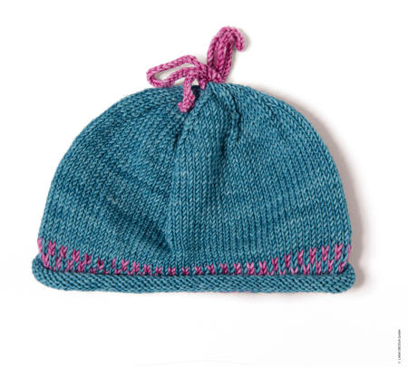 ein Nadelspiel 3,5 mm (alternativ mit einer Rundstricknadel in der Magic-Loop- Methode arb); eine Häkelnadel 3 mm; Maschenmarkierer