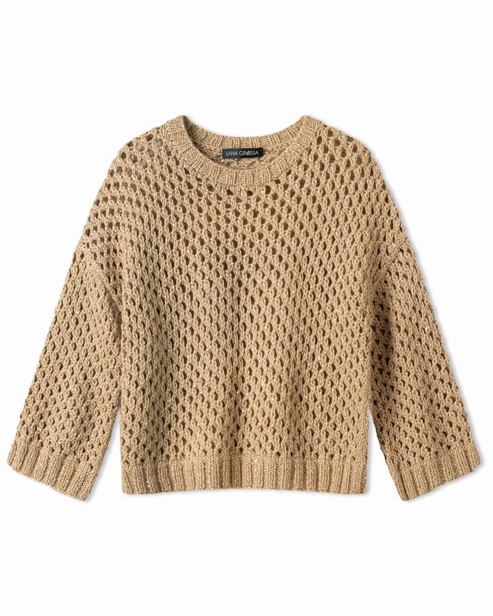 Lana Grossa-Qualität „Frizzante“ (54 % Baumwolle, 46 % Polyamid, LL = ca 105 m/50 g): ca 200 (200 - 250 - 250) g Creme (Fb 1)