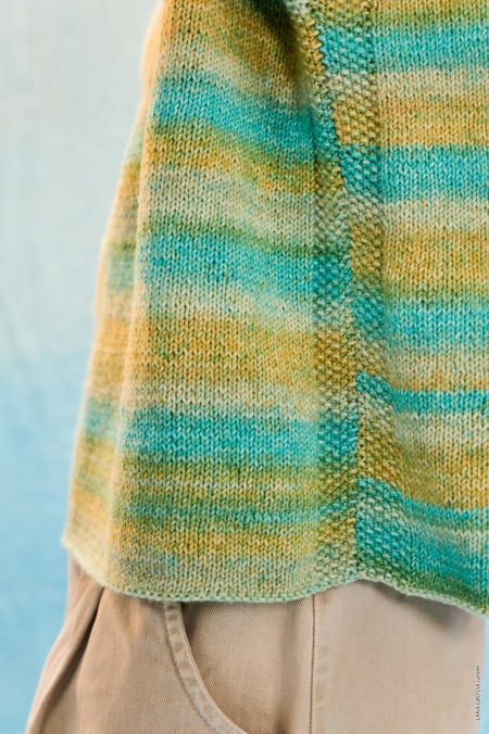 ca 4 (5 - 5 - 6) Knäuel = ca 400 (500 - 500 - 600) g Türkis/Frühlingsgrün/Grünbeige/ Maisgelb (Fb 2040)