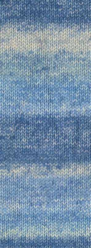 MATERIALBEDARFGröße ca. 238 x 66 cmLana Grossa Cool Wool Lace (100% Schurwolle (Merino extrafine), Lauflänge 400 m/50 g),100 g in Nachtblau (Fb. 23) und 50 g in Schwarzbraun (Fb. 57)und Lana Grossa Soffio (60% Schurwolle (Merino superfine), 30% Baumwolle (Bio), 10% Kaschmir, Lauflänge 215 m/25 g),je 50 g in Hellblau (Fb. 13), Beige (Fb. 16) und Rohweiß (Fb. 18)1 Rundstricknadel Nr. 4, 120 cm lang, 1 Nadelspielnadel Nr. 4, 1 Maschenmarkierer